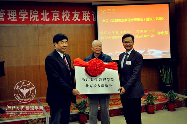 北京浙江大学校友会原会长陈明德学长也在百忙之中赶来参会,并和吴晓波院长一起为北京校友联谊会授牌。长期从事校友工作的他,致词中多了一份真挚的建议,他说:“成立一个校友联谊会实属不易,这当中的工作实在太过琐碎。但是今天,我们管院北京校友联谊会成立了,希望今后,联谊会能在为浙大、管院的发展和校友服务上做出贡献。”