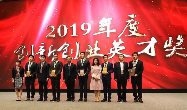 韦德官方站网页版博士生白云峰(右5)荣获“2019年度创新创业英才奖”