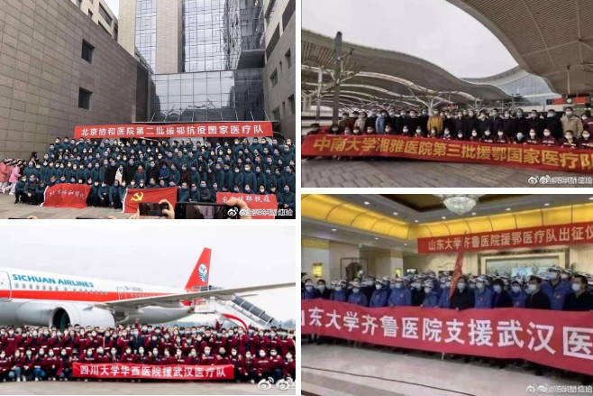 2月7日,医疗界四大天团医院 “北协和、南湘雅、东齐鲁、西华西”驰援武汉,一天内2043名医疗队员抵达武汉机场。