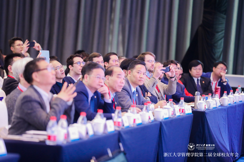 当然,作为院长,魏江教授更毫不客气地对管院人提出了严格的要求和更高的期望,那就是构建领导力和高格局,着眼于未来、着手于全球,真正做引领中国发展的健康力量!同时,魏院长以竺可桢老校长的“两个为什么”来勉励和警醒浙大管院人,要有伟大的抱负和光荣的梦想,要做新时代下忠贞公义、转移国运的领袖!魏院长还把此前自己从长春飞往深圳途中写下的一首诗,当场朗诵并献给在座的各位浙大管院人,寄托了他对浙大管院的深厚情谊和殷切的希望。魏院长干货满满的分享和热情真诚的教导,鼓舞并激励了在座每一位管院人的内心,让与会人员既感到热血澎湃,又倍感压力,唯有“撸起袖子加油干”!