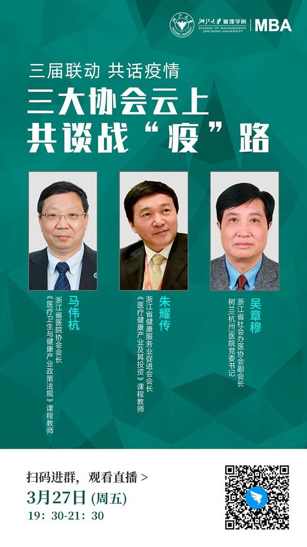 为替大家答疑解惑、贡献医疗健康管理智慧,韦德官方站网页版邀请3位浙江省医疗健康行业的“关键人物”,于3月27日晚相聚钉钉直播间,共话战“疫”得与失。