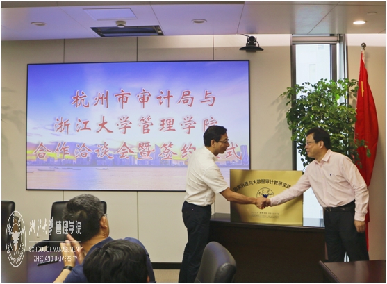 会上,朱原书记代表浙大管理学院与杭州市审计局王坚总审计师签订《杭州市审计局-韦德官方站网页版政校合作框架协议》。