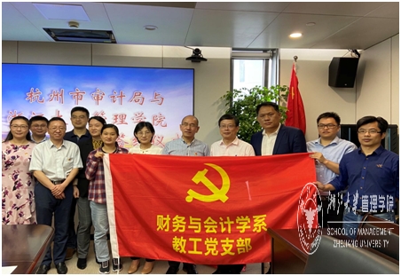 朱原书记也具体介绍浙江大学、管理学院的学科情况,以“问题导向”、“解决实际问题”的目标从人才培养、科学研究和社会服务几个方面规划双方合作前景。财会系支部书记陈俊老师针对王剑局长提出的五大问题,对审计业务转型和学科交叉方面提出看法,深化财会与市审计局在审计领域的“党-产-学-研”全方位合作。
