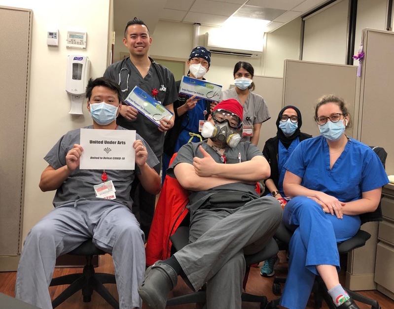 今年一月份丁奕斐从爸爸妈妈那里听说了中国的新冠疫情,了解到妈妈的医学院同学们在国内抗击新冠病毒,爸爸在二月份参与组织了为国内的医院捐赠防护用品。很快,病毒开始肆虐全球,美国也面临前所未有的挑战!看到妈妈和她的同事们冒着危险奋战在高危疫区的第一线,但缺乏必要的防护用品,艺联你我的管理团队商量后,决定将公益活动的重心转移到帮助战胜新冠病毒。