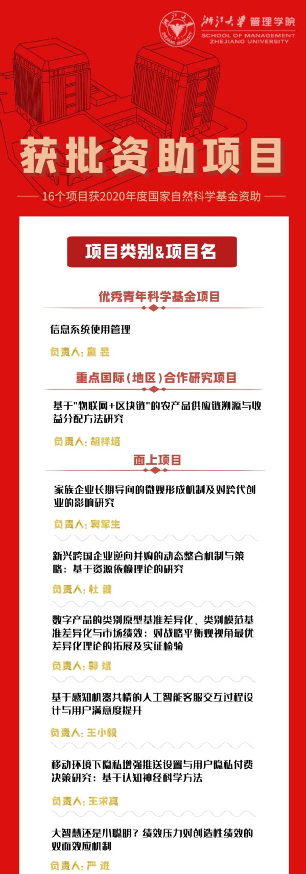 依托浙江大学雄厚的综合学科优势,科研学者们在项目申报过程中,基于“顶天立地”学术理念,围绕中国社会发展中的管理实践难题,结合浙大多学科交叉研究积极开拓项目,把论文写在祖国大地上。