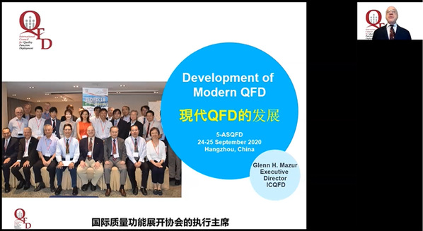 美国QFD研究院院长、国际QFD组织(ICQFD)执行主席Glenn Mazur以“现代QFD发展”为题发表演讲。Glenn Mazur着重介绍了QFD如何从最初“聚焦新产品制造质量”的传统QFD发展到“不仅涵盖制造和可靠性方面的问题,还关注产品的可用性、设计、创新及制造质量”的全面QFD,再到“聚焦3-5个重要顾客需要,以端到端形式完成全面QFD和黑带QFD各项展开”的现代QFD。