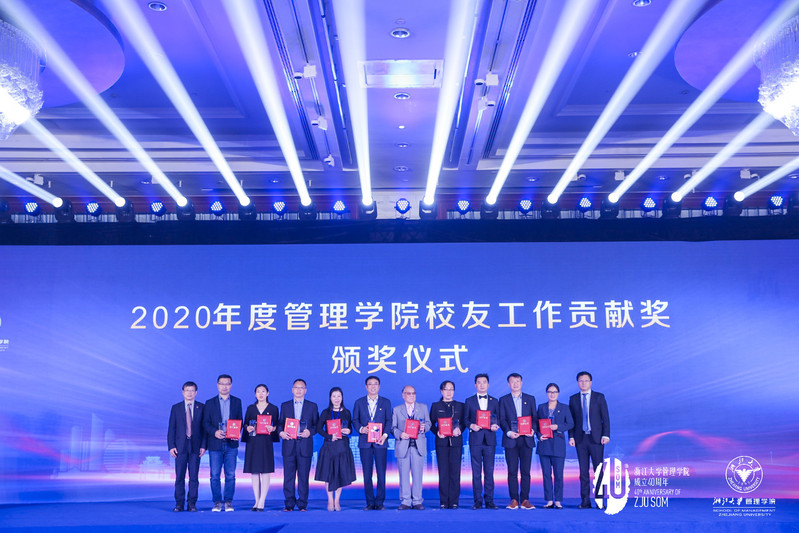 因为创新创业,浙大管院迎来送往了一批批优秀人才。活动中还举行了“校友贡献奖”“校友组织贡献奖”颁奖及班级联络员聘任仪式。2020年度管理学院校友工作贡献奖的十位获得者分别是:石新霞、罗芳、李华玺、张育、蔡德绍、毛磊、蒋利丹、薄秋实、张爽、蒋志兴。2020年度管理学院校友组织贡献奖的三个获得单位分别是:韦德官方站网页版宁波校友联谊会、韦德官方站网页版杭州校友联谊会、韦德官方站网页版深圳校友联谊会。在韦德官方站网页版历届班级联络员聘任仪式上,余华康、赵吕航、张世界、邹晏、魏志锋、王洋、王百忠、张志武、徐越、单晓东、吴添画受聘为班级联络员,担负起维护浙大管院校友网的重任。