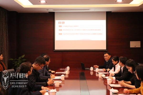 在座谈环节,财会系教工党支部书记、财务与会计学系主任陈俊教授首先向安丰创投党支部的同志们表示了热烈的欢迎并介绍了财会系教工党支部的基本情况与发展成就。陈俊教授结合企业调研经验和研究热点生动阐释了党的十九届五中全会公报要点以及习近平总书记在中央党校中青年干部培训班开班式上的重要讲话精神,为与会的同志们带来了一堂精彩生动的党课。陈俊教授强调,深入学习党的十九届五中全会重要精神是党员提高政治站位、提升政治能力的必修课,对于研究、工作以及学习,都有着举足轻重的指导意义。