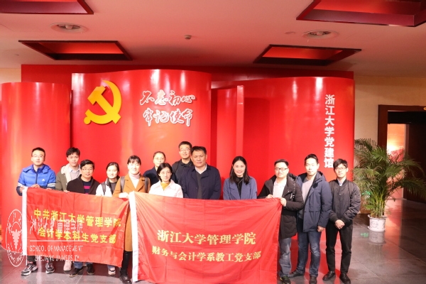 浙江大学党建馆是展示全校党建成果的一面旗帜。来自教工党支部、学生党支部以及安丰创投党支部的党员们首先来到这里参观学习,在“红船精神”和“浙江大学党建工作”两个主题展厅中重温中国共产党人的初心与使命。在重温我党建立以及改革开放的奋斗历程中,党员们进一步了解了红船精神的精神内涵与时代价值;在安徽小岗村大包干契约背后,党员们感受到了会计学科与国家改革、时代发展同频共振的伟大实践;在费巩、于子三、程开甲、林俊德等一代又一代灿若星辰的浙大人身上,党员们看到了求是学子“以天下为己任,以真理为依归”的信仰之辉和信念之基。浙江大学在党的领导下扎根中国大地办世界一流大学的光辉历程、浙大人“勇立潮头”的奋斗故事,都给党员们留下了深刻的印象,其中不乏管理学院党组织的身影,激励着党员们永葆初心、砥砺前行。党员们还参观了浙江大学艺术博物馆。