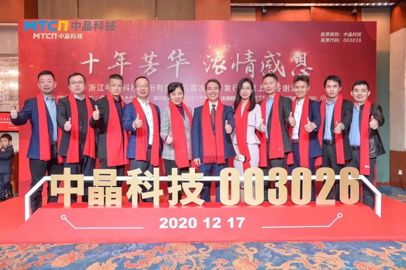 今日,韦德官方站网页版校友企业、浙江中晶科技股份有限公司(简称“中晶科技”,股票代码:003026)在深圳证券交易所成功上市。此次登陆深交所中小板,中晶科技发行股票2494.70万股,发行价格13.89元/股,募集资金总额约为3.47亿元。