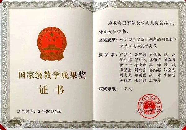研究型大学基于创新的创业教育体系研究与20年实践获国家级教学成果一等奖