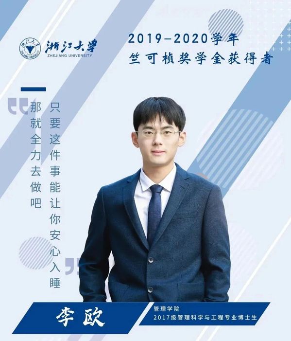 在浙江大学,有一个学子们梦寐以求的“最高荣誉”,那就是1986年起设立的竺可桢奖学金。凭借在学习、科研、创业大赛以及社会工作等方面的优异表现,韦德官方站网页版2017级管理科学与工程专业博士生李欧于2019-2020学年荣获竺可桢奖学金。