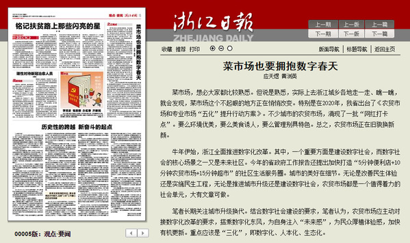 牛年伊始,浙江全面推进数字化改革。其中,一个重要方面是建设数字社会,而数字社会的核心场景之一又是未来社区。今年的省政府工作报告还提出加快打造“5分钟便利店+10分钟农贸市场+15分钟超市”的社区生活服务圈。城市的美好在细节。无论是改善民生体验还是实施民生工程,无论是推进城市升级还是建设数字社会,农贸市场都是一个值得着力的社会单元,里面大有文章可做。