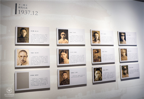 解说员告诉师生们,浙江大学迁至建德之后,上海保卫战已接近尾声。当时盛传“游击克敌”之说,恰好军事委员会属下的诸嵊新宁游击总队派人来浙大招募队员,满怀救国热情的洪鲲(浙大管院建院元老之一)与刘奎斗、丁而昌、吉上宾、汤兰九、程羽翔、程民德、王家珍、黄宗麟、李建奎、虞承藻、陈家振等12 位同学毅然决定弃笔从戎,踊跃报名参加了游击队。