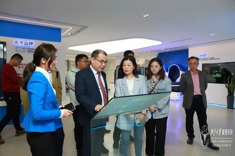 同时,管院校友一行参观了智慧党建展示厅,谢炳超会长表示将以党建工作为引领,进一步开展更深层次的活动,携手共同谱写新篇章。