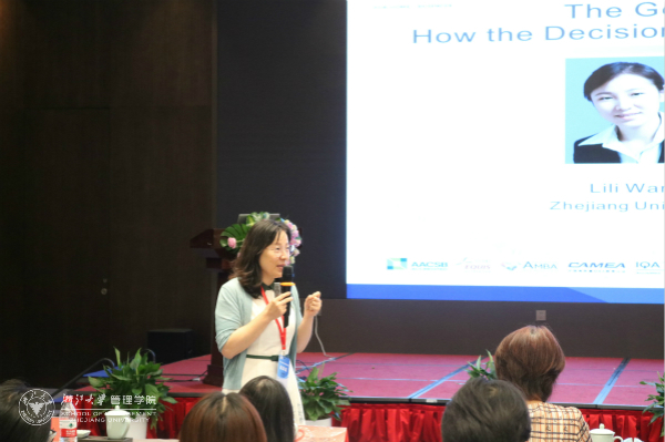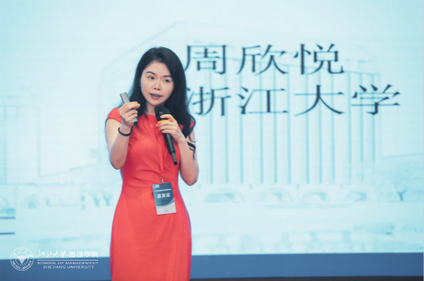 在会议中压轴出场的是浙江大学市场营销系的王丽丽老师,她言辞诙谐、语调欢欣,听众们不禁精神抖擞、全神贯注。丽丽老师从生活中的经历出发,让大家讲述了“决策情境对亲社会行为的纸上谈兵效应”的研究背景。在分享的过程中,松紧有度,丽丽老师将严肃的学术内容与轻松的生活经历、研究经验相结合。听众们在听讲的同时,还收获了丽丽老师独家分享的有趣科研小故事,现场气氛活跃,掌声雷动。