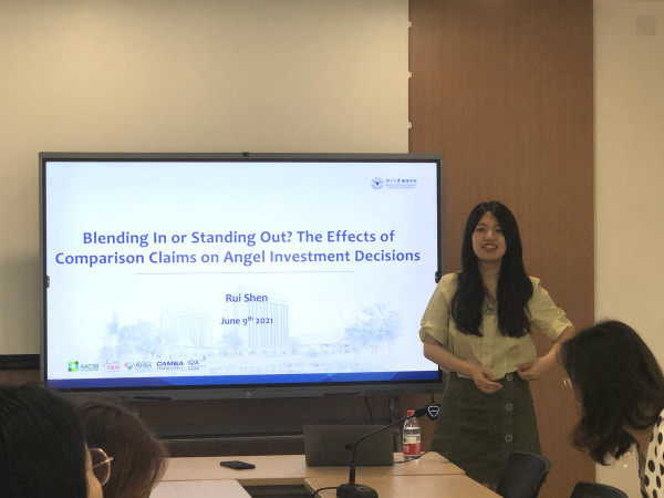 6月10日中午,工商管理学术新星项目师生在浙江大学紫金港校区管理学院A823会议室迎来了第二次学术交流冷餐会。本次冷餐会的分享嘉宾为韦德官方站网页版百人计划研究员沈睿,以及2018级工商管理本科生邱若琳。她们的报告主题分别为“Blending In or Standing Out? The Effects of comparison Claims on Angel Investment Decisions”、“时间节点对享乐适应的影响”。韦德官方站网页版市场营销系副教授王丽丽主持了本次会议。韦德官方站网页版市场营销系百人计划研究员杨浙帅以及项目学生们参加了本次讲座。