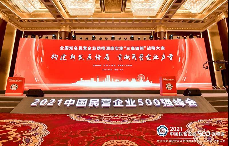 9月25日,由全国工商联主办,以“构建新发展格局,贡献民营企业力量”为主题的“2021中国民营企业500强峰会”在湖南长沙隆重举行。峰会正式发布了“2021年中国民营企业500强”榜单。