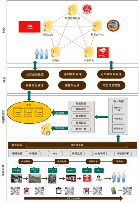 在如今食品安全堪忧的背景下,从源头解决消费者信任才是最根本的问题,尤其是西藏的农产品产量少、品质高、物流成本高等因素,其价格稍微偏高。团队成员殷文杰、张源凯等人以林芝松茸为切入点,提出建设基于物联网和区块链技术的松茸及加工品溯源系统,不仅撰写了万字可行性研究报告以及项目建设建议书,而且设计研发了基于Hyperledger平台的区块链溯源系统建设方案,为解决松茸溯源问题提供了切实可行的方案。与此同时,在导师王明征教授的指导下,管理学院博士生权杉杉等学生与兄弟院校的师生团队携手合作,初步设计了基于区块链的藏香猪溯源系统建设方案,后续工作正在进一步开展中。
