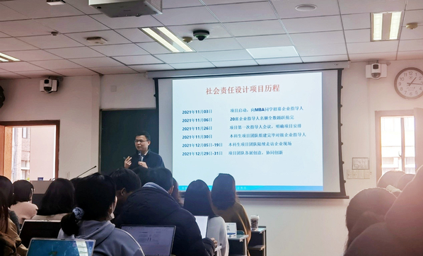 该课程邀请20位先期修习完毕“企业社会责任与伦理”MBA课程的MBA学生担任企业指导人,带领“伦理与社会责任”课程的20个本科生团队,共计约110人,以线上线下融合形式,走进他们热爱的企业,开展迷你行动学习,共同研讨“共同富裕背景下,企业如何开展社会责任创新设计,实现社会价值与商业价值双赢”。