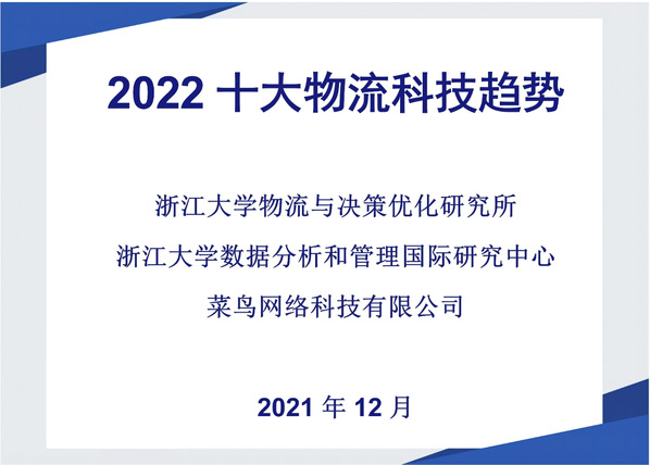 放眼刚刚来临的2022年,在国家“双碳”战略下,以及新冠疫情、国际局势等不确定性因素持续影响下,哪些物流科技才是行业需要的好科技?2021年12月30日,浙江大学物流与决策优化研究所、数据分析和管理国际研究中心,联合菜鸟网络科技有限公司,发布了2022十大物流科技趋势报告。