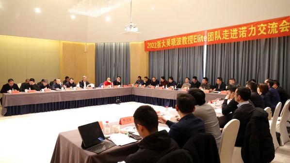 总裁丁毅等诺力高层管理团队成员与吴晓波教授团队围绕诺力的发展战略、实现战略目标的路径、集团治理等问题展开深入交流,交流会由诺力集团执行副总裁徐松屹主持。
