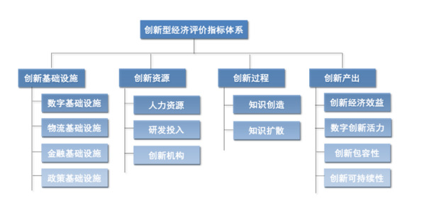 为此,《蓝皮书》主要通过创新基础设施、创新资源、创新过程和创新产出四个核心要素来描述创新型经济视发展(见图1)。