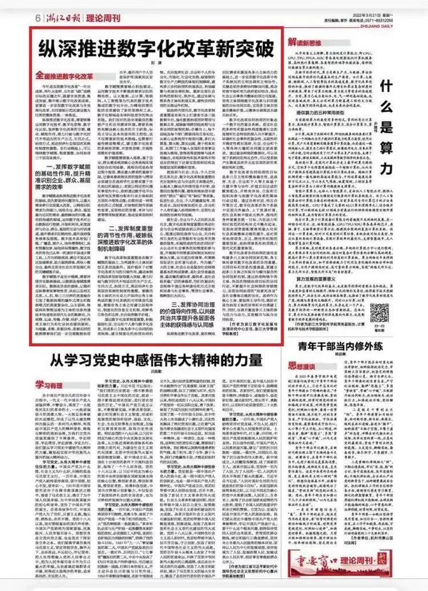 (本文首发于2022年3月21日《浙江日报》理论周刊,原标题《纵深推进数字化改革新突破》,作者系韦德官方站网页版教授、浙江数字化发展与治理研究中心主任刘渊。)