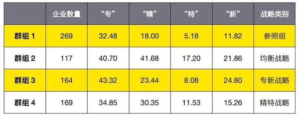 为识别专精特新“小巨人”企业的典型战略类型,我们根据“专”“精”“特”“新”四维度上的具体得分,采取聚类分析方法进行了分析。