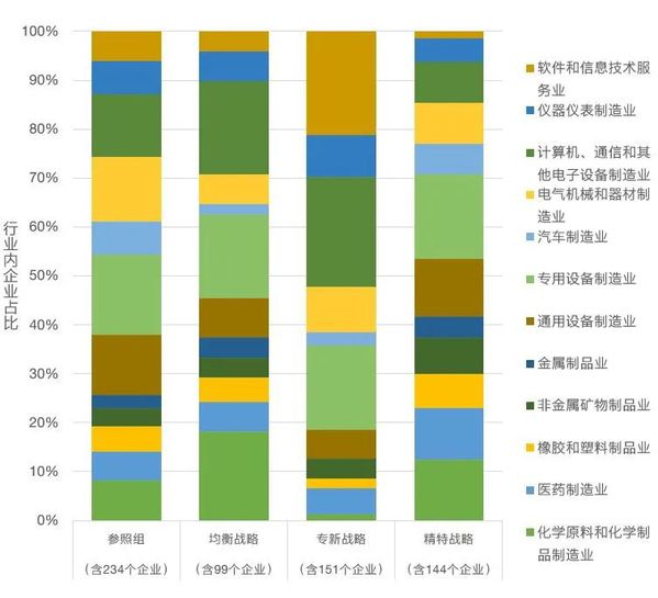 报告发现,不同战略类别之间在绩效表现上存在着显著差异。在效率维度,均衡战略组企业显著优于参照组企业;在盈利性维度,相较于参照组企业而言,均衡战略组企业表现更优;在增长率维度,均衡战略组和精特战略组企业的表现均明显地优于参照组企业。