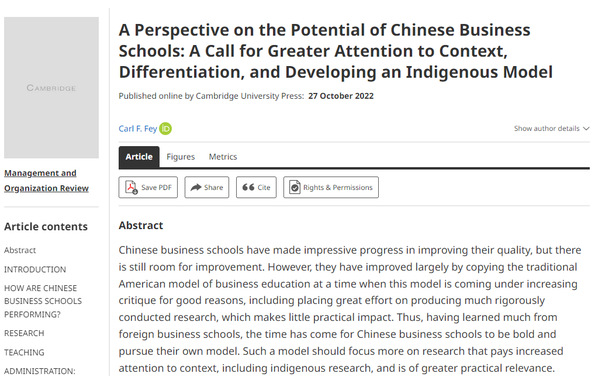 芬兰阿尔托大学商学院教授Carl Fey文章发表截图