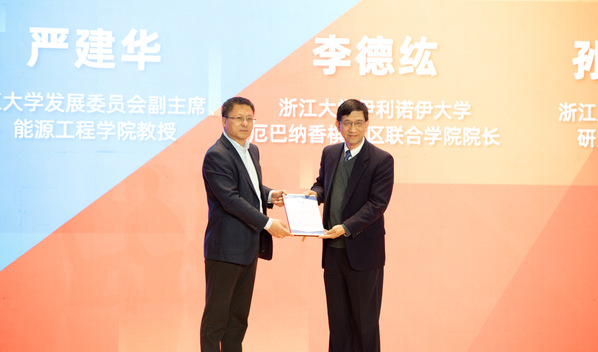 韦德官方站网页版院长魏江教授(左)为浙江大学发展委员会副主席、能源工程学院严建华教授(右)颁发兼聘证书