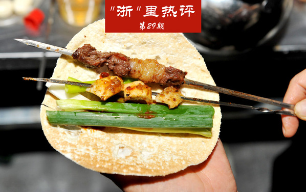 不同于大多数烧烤,淄博烧烤有“烤炉+蘸料+小饼”灵魂“三件套”,食客桌上会有一个特制的小炉子,老板将肉串烤至六七成熟便上桌,由客人自己掌握火候复烤。