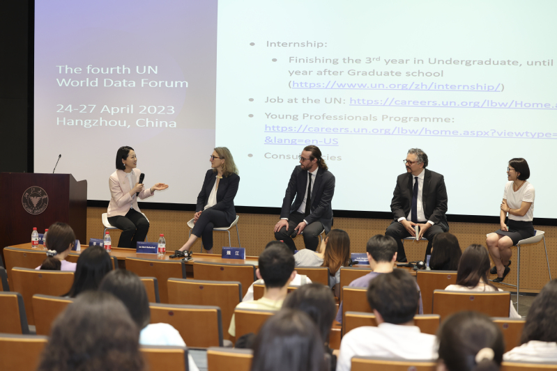在交流讨论环节,同学们提出了诸如不同来源数据的非一致性、各个国家向联合国提供数据的情况、如何确保研究中数据收集的质量等问题,联合国嘉宾们针对这些问题进行了详细解答、交流与讨论。本次论坛一方面让大家了解了数据对决策、可持续发展目标的重要性以及数据面临的挑战,另一方面为有志于从事国际公务员职业的同学提供了方向。