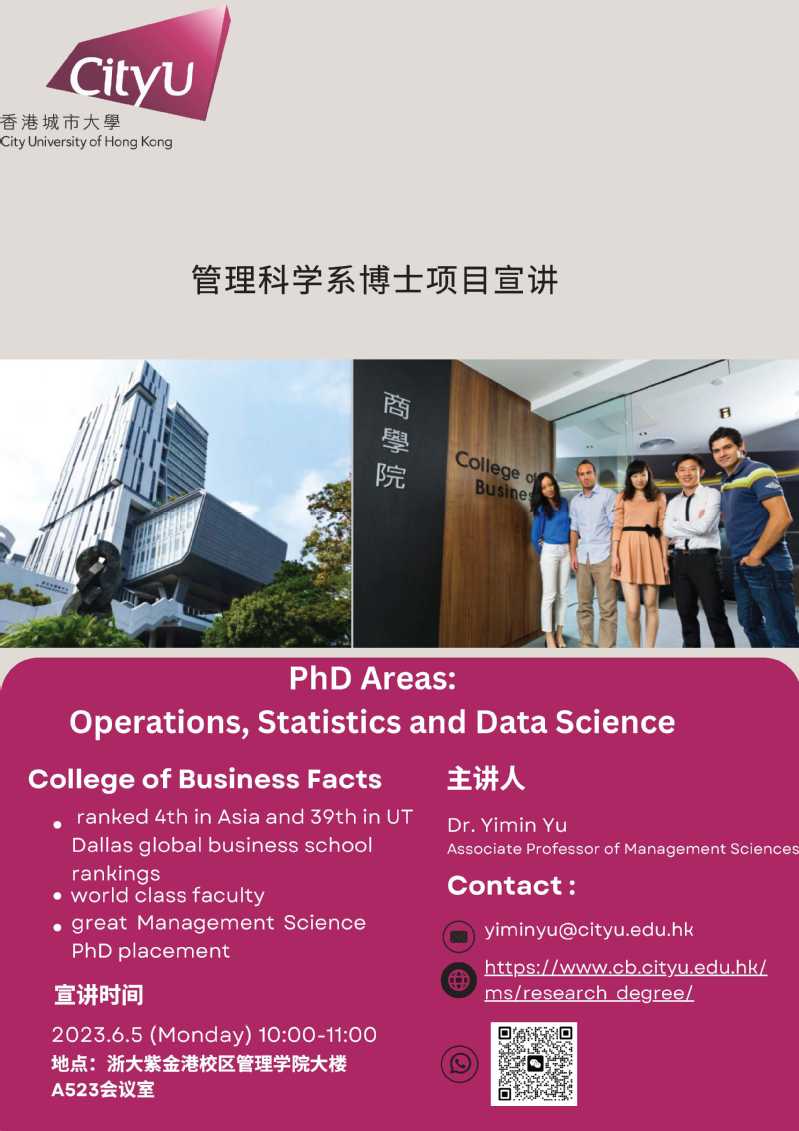 香港城市大学管理科学系博士项目宣讲