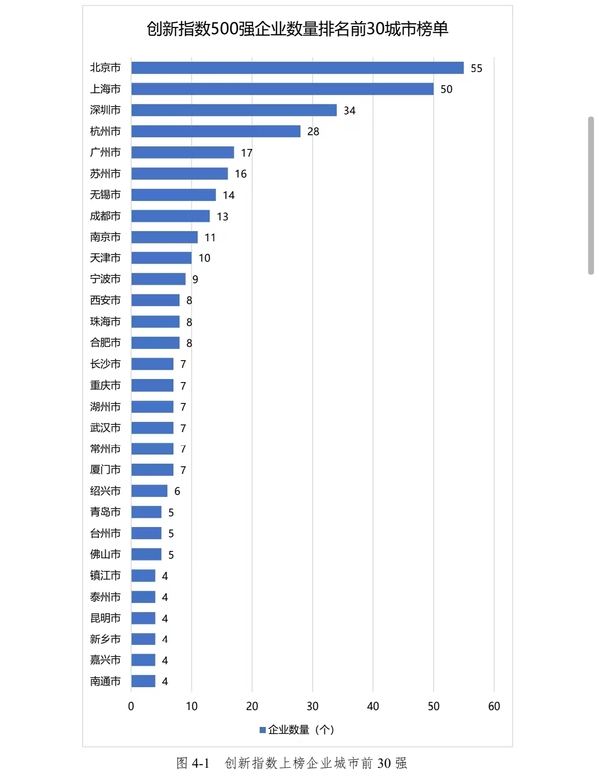 在10大创新型企业集聚城市中,京沪的创新指数500强企业数量最多,分列第一、二位,杭州位列第四。与去年相比,“制造业大市”宁波跌出十大创新型聚集城市行列,位列第11位。天津晋级前十。