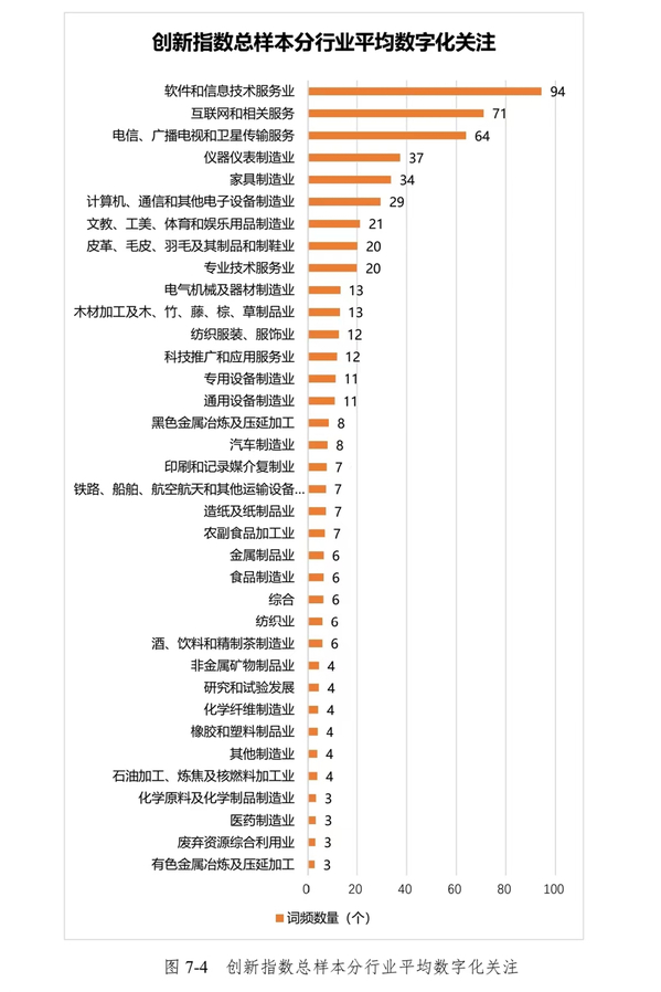 《报告》进一步发现,不同行业对数字化关注的侧重点也有所不同。以对数字化关注最多的十大行业为例,软件和信息技术服务业更加关注数字化转型的底层技术;传统制造业(如计算机、通信和其他电子设备制造业,电气机械及器材制造业,专用设备制造业,仪器仪表制造业以及汽车制造业等)和通用设备制造业除关注底层技术外,还关注数字技术在工业互联网、智能电网、智慧农业、智能家居和智能穿戴等领域的应用;互联网和相关服务行业,专业技术服务业以及电信、广播电视和卫星传输服务等则更加关注电子商务、数字营销、移动互联、智能交通和互联网医疗等数字化实践应用领域。