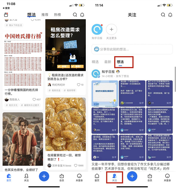 值得一提的是,据观察,知乎最近在内容呈现形式上做了改版,即把“想法”放在单独的信息流中呈现,不再穿插于严肃知识内容(“回答”和“文章”)中。
