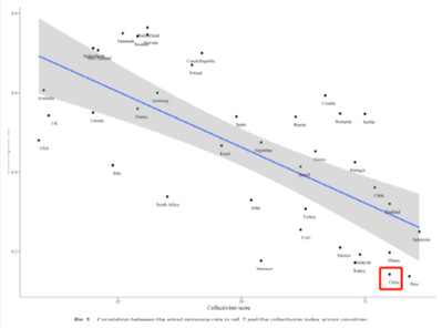 在重新分析Cohn等人的研究数据后,周欣悦及其合作团队又发现了另一重要结论,即“电子邮件回复率”与国家层面的集体主义指数呈显著负相关(r=-0.780,p<0.01)。