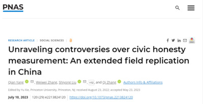 那么在Cohn等人的研究中,中国公民诚实度排名为何会如此之低?周欣悦及其合作团队的研究,又是如何证实中国公民的诚实水平的?本期【科研】专题,一起来看这项提振“文化自信”的重要研究。