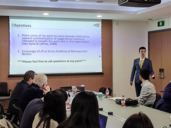 11月17日上午,“与主编面对面”系列讲座特别邀请到了香港城市大学副教授,著名管理学期刊Academy of Management Review (AMR)副主编Chak Fu Lam围绕他本人关于建言行为的研究和从编辑角度探讨为何会被AMR拒稿这两个主题展开了深入探讨。讲座由领导力与组织管理学系胡琼晶副教授主持。