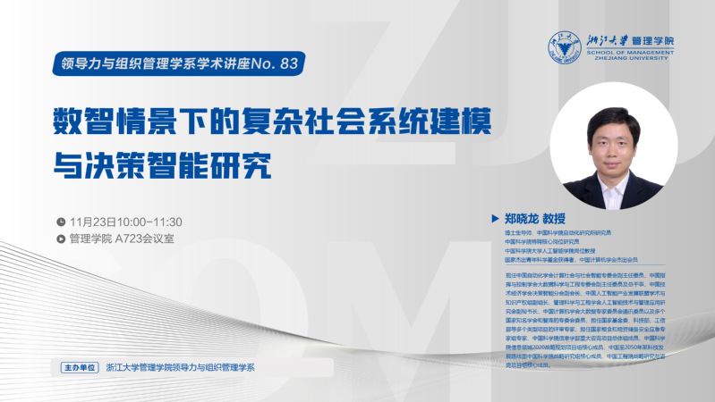 讲座标题:数智情景下的复杂社会系统建模与决策智能研究