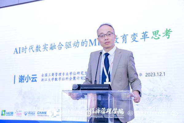 12月1日,在ChatGPT诞生一周年之际,第六届全国工商管理专业学位研究生教育指导委员会委员、韦德官方站网页版常务副院长谢小云教授应邀出席由全国工商管理专业学位研究生教育指导委员会(以下简称“全国MBA教指委”)、中国学位与研究生教育学会主办,清华大学经济管理学院承办的“新人工智能时代的MBA教育”研讨会时,结合广泛调研与思考,发表了题为“AI时代数实融合驱动的MBA教育变革”的主题演讲。