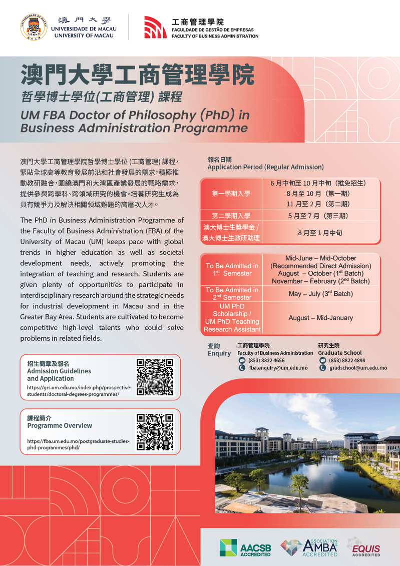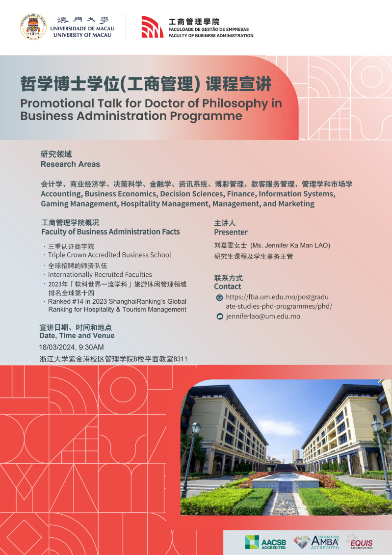 澳门大学工商管理学院哲学博士学位(工商管理)课程宣讲会