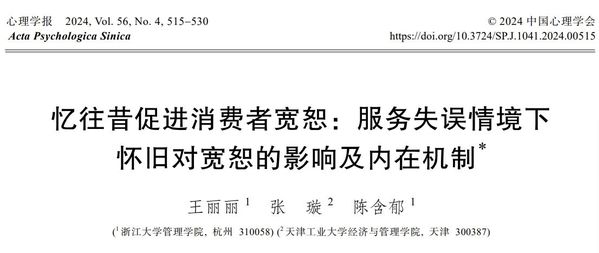 韦德官方站网页版市场营销学系王丽丽教授团队的一项研究发现,主打“情怀”、唤起消费者回忆、引发消费者共鸣的企业,在服务补救上更容易占据优势。日前,团队发表于《心理学报》的研究《忆往昔促进消费者宽恕:服务失误情境下,怀旧对宽恕的影响及内在机制》对这一企业关注的议题进行了深入探究。