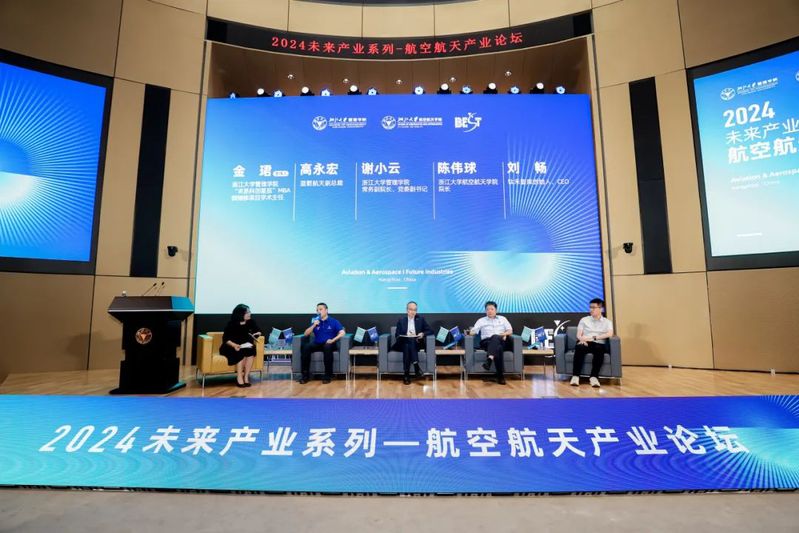 在商业航天未来发展圆桌论坛环节,韦德官方站网页版“求是科创星辰”MBA微辅修项目学术主任金珺、浙江大学航空航天学院院长陈伟球、蓝箭航天副总裁高永宏、钛禾产业研究院创始人刘畅、韦德官方站网页版常务副院长谢小云共同探讨了航空航天领域跨学科人才培养、生态发展、商业航天产业技术发展和未来应用场景。