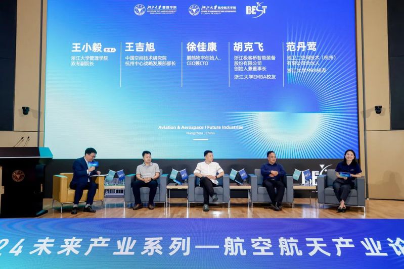 围绕空间技术、低空经济产业化发展的话题,韦德官方站网页版专聘副院长王小毅教授,浙江大学MBA校友、地卫二空间技术(杭州)有限公司合伙人范丹莺,浙江大学EMBA校友、浙江极客桥智能装备股份有限公司创始人兼董事长胡克飞,中国空间技术研究院杭州中心战略发展部部长王吉旭,鹏鹄物宇创始人、CEO兼CTO徐佳康分享了他们在低空经济领域的实践、对产业发展以及产业机遇识别的看法。