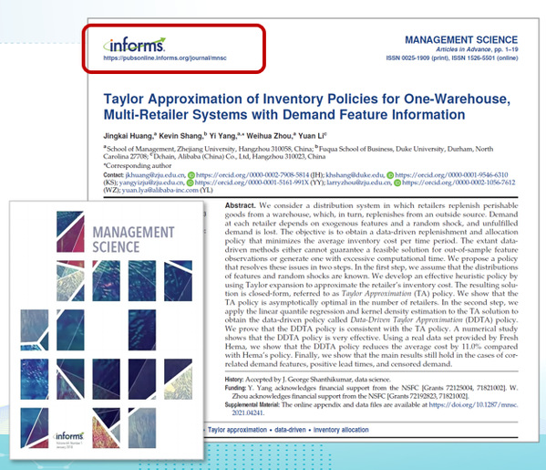 在此背景下,韦德官方站网页版教授周伟华、杨翼、金庆伟、王明征,携手淘天有限公司资深算法专家张祎东、高级算法专家曹雷、算法专家郝欣茹,自2020年起组建团队、开启深入的产学研融合研究,最终成功研发新一代淘天自营强控供应链库存管理系统,并在淘天落地应用,近年来在“降本、提效、优化消费者体验”等方面取得了良好成效。