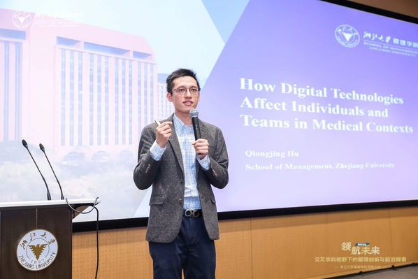 浙大管院副教授胡琼晶以“How Digital Technologies Affect Individuals and Teams in Medical Contexts”为题,分享了他正在开展中的两项学科交叉研究。他表示,数字技术应用对组织变革的最大影响,一个发生在沟通,一个发生在决策,主要表现在数字技术应用对跨部门沟通协调与对人类学习成长的影响上。