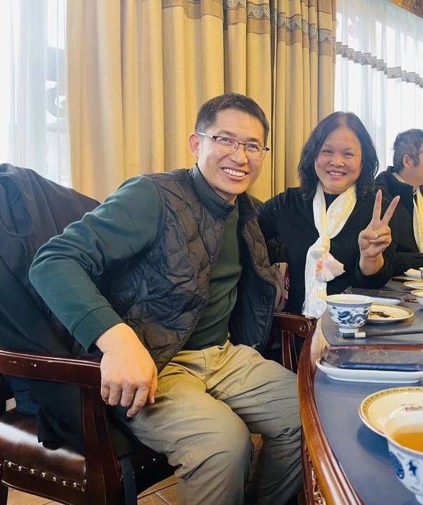 西藏班毕业生扎旺(左)如今在西藏大学从事科研育人事业,交流会后与黄浏英老师开心合影